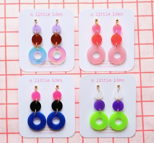 A Little Idea is a contemporary jewellery brand created by Dublin-based designer and maker Ali. Specialising in laser-cut acrylic statement pieces, her designs are inspired by past decades and named after iconic figures in fashion.