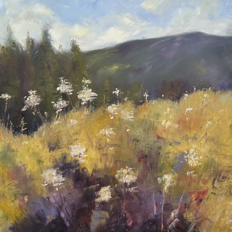 Following a painting workshop in Holland, plein air influenced her work, with inspiration around every corner of Skerries and beyond.  The daily painting movement inspires her small still life paintings in oil of local scenery and kitchen still lives.      Working mostly with a palette knife, her paintings are characterised by vigorous thick buttery slashes of colour, with highlights of heavy impasto paint.