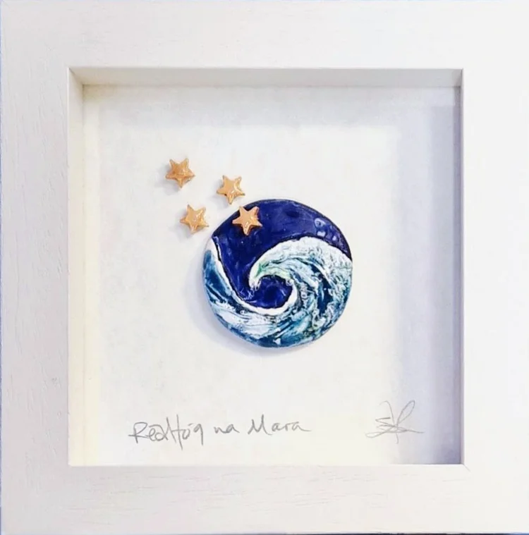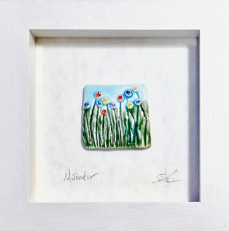 Sharlene fell in love with porcelain and ceramic relief tile art at the University of Ulster, Belfast. This affinity, together with a lifelong love of beach combing for treasures, results in the designs that inspire her collections today. The pieces are intentionally brightly coloured, reflecting a contentment and meaningful enjoyment of a scene or memory.