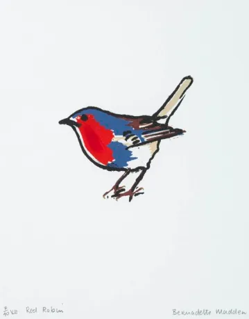 In 1998 she was appointed to Cultural Relations Committee (to promote Irish Art abroad) by the Minister for Foreign Affairs. The same year Batik “2000” was used as the millennium symbol by the Diocese of Dublin. In 1999 her “St. John” batik was presented to his Holiness Pope John Paul II by President Mary McAleese, and more recently in 2000 her “St.Benedict” wall hanging was presented by An Taoiseach Bertie Ahern to his Holiness Pope Benedict XVI. In 2009 Madden’s self-portrait was acquired by the National Portrait Collection in Limerick University and in 2010 she was selected as one of two hundred artists in Robert O Byrne’s Dictionary of Irish Artists. She is renowned for her excellent batiks and her wonderful collection of screenprints.