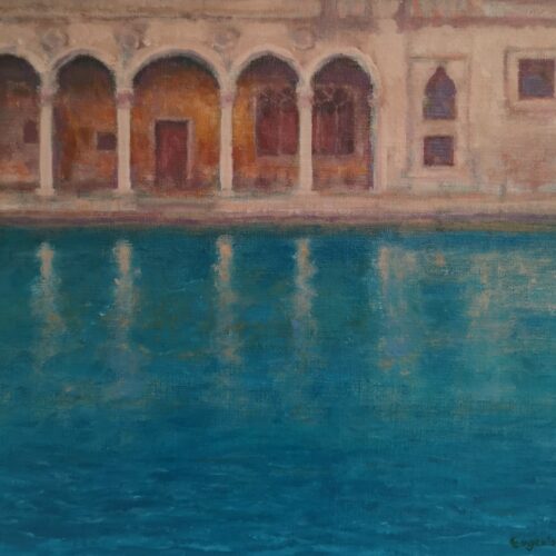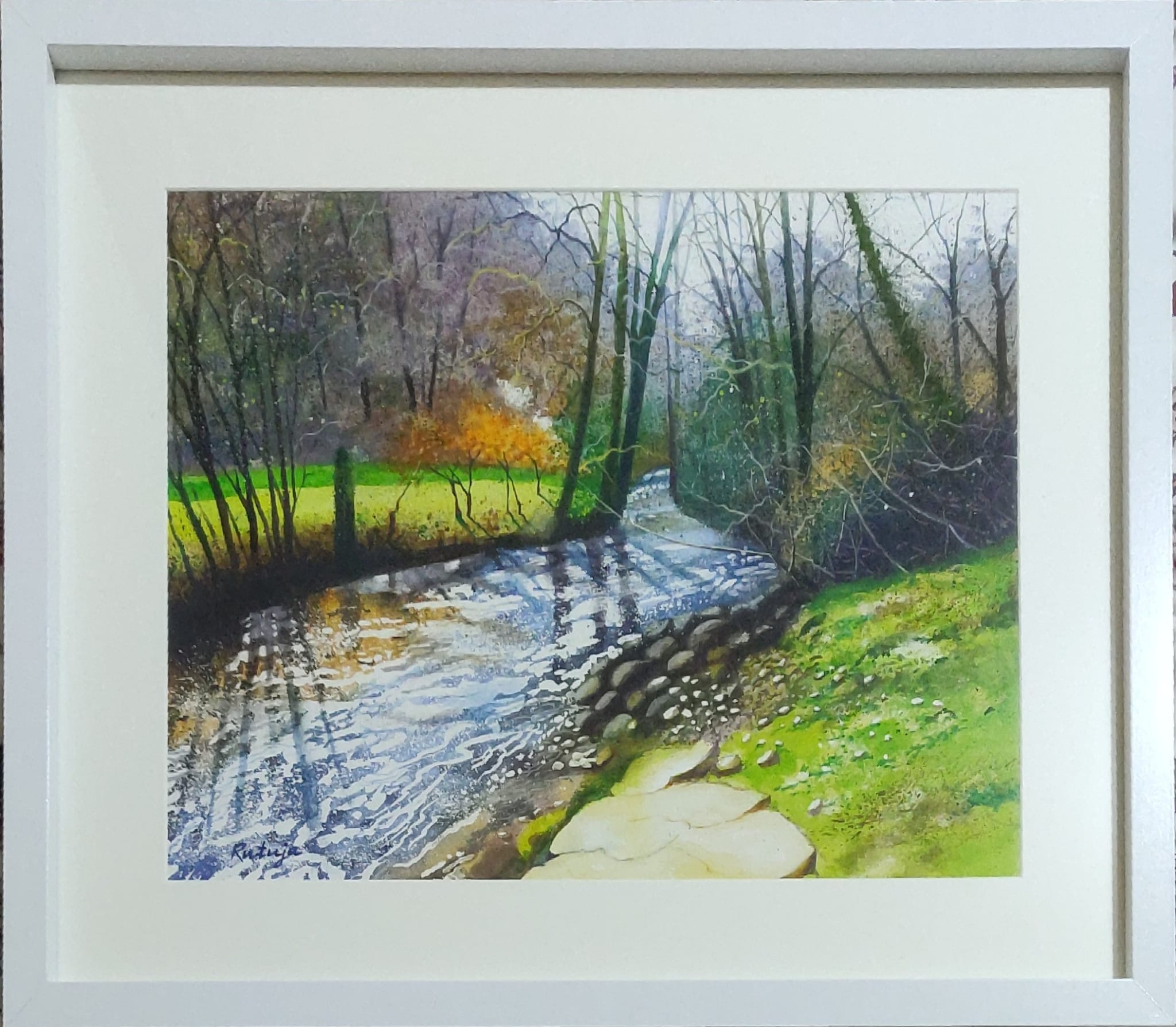 Autumn Evening Shadows on the River- Watercolour – by Rutuja Kulkarni