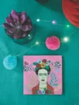 Bright pink Frida Kahlo paper cocktail napkins. Boho party napkins for Mexican fiesta, Cinco De Mayo, summer birthday party or colourful paper napkins for decoupage.