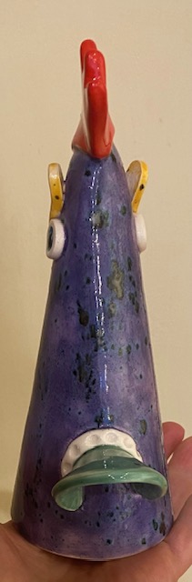 These ceramic chicks, handmade by Pottery by Kathy, are just a whole lot of fun! With fantastic colours and lovely embellishment, each one is unique and special. A wonderful present that will always bring a smile to the face of its owner! It measures approximately 200mm high x 100m wide, including the tail.