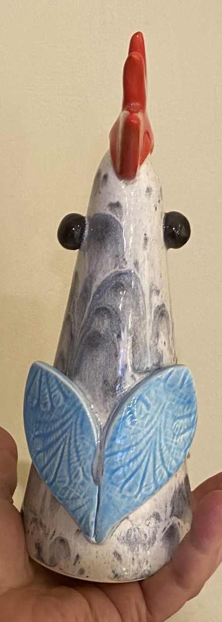 These ceramic chicks, handmade by Pottery by Kathy, are just a whole lot of fun! With fantastic colours and lovely embellishment, each one is unique and special. A wonderful present that will always bring a smile to the face of its owner! It measures approximately 200mm high x 100m wide, including the tail.