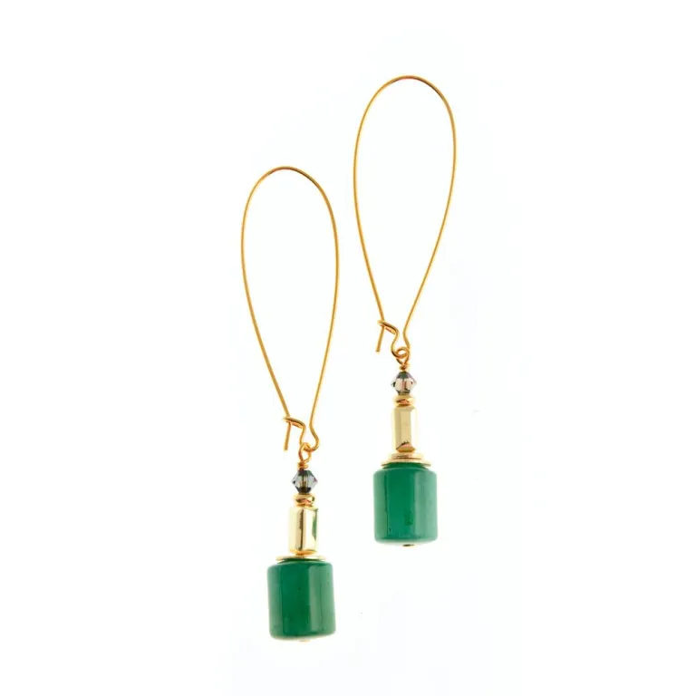 Bringing the most vibrant shade of our beautiful island to the fore captured by stunning Aventurine stone, 9 ct gold, Exquisite Crystals- this is truly a contemporary way to celebrate our signature tones of Emerald green. Intrigue and delight with these stunning earring handmade with in a celebration of the wamest of green tones and jewels.