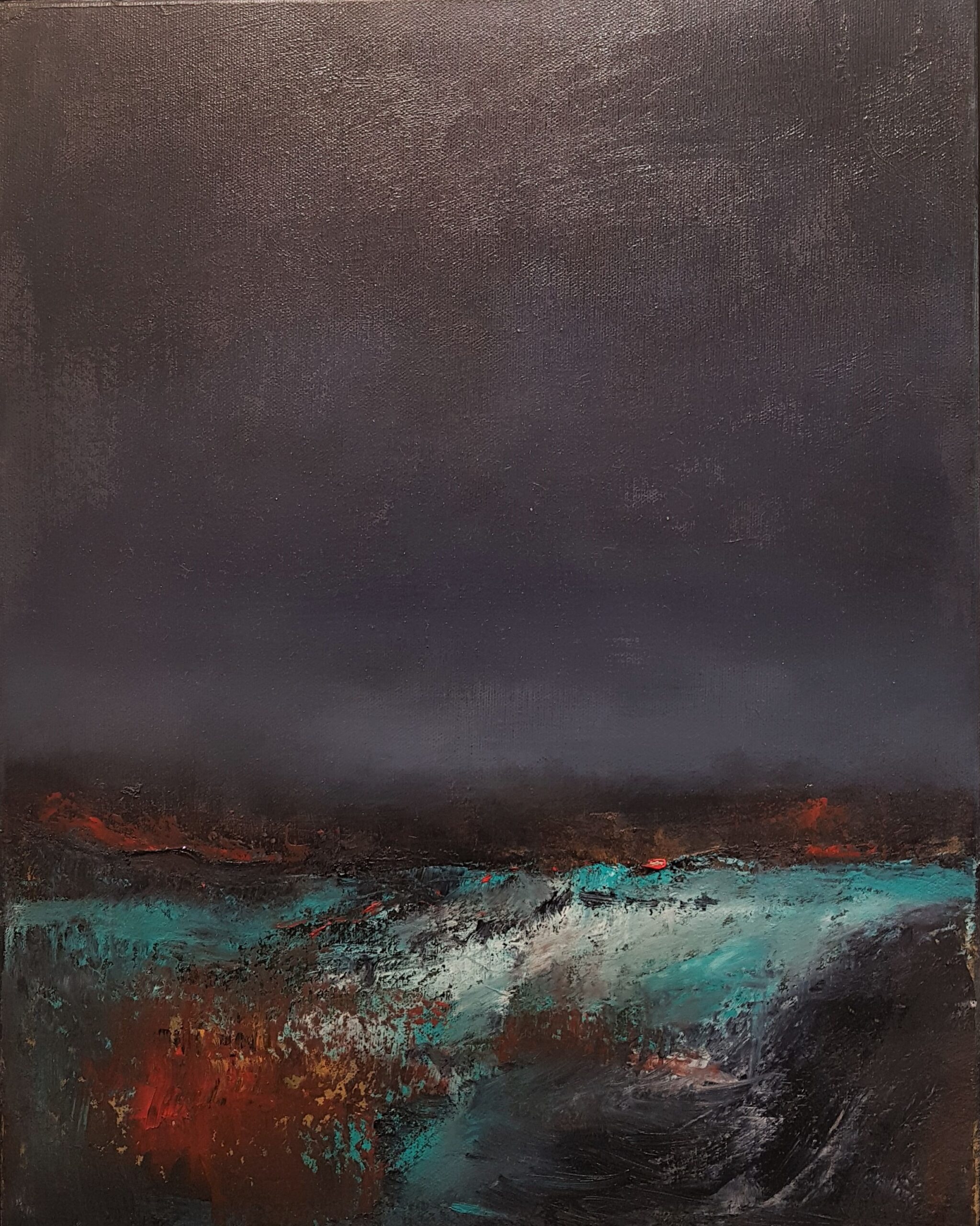 This painting is Oil on Linen, measure 30x30cm and comes framed.